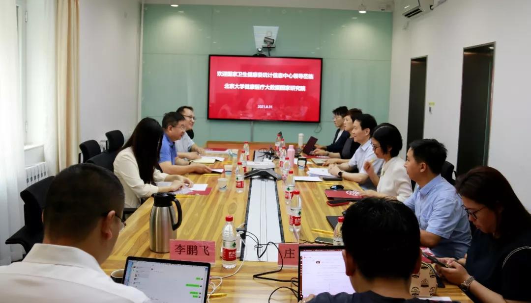 2021年8月31日,国家卫生健康委统计信息中心周恭伟副主任、大数据办赵飞副处长一行到访北京大学健康医疗大数据国家研究院(以下简称“研究院”)调研。研究院院长詹启敏院士、副院长张路霞教授以及研究院相关科研、管理人员参加会议。双方就健康医疗大数据应用管理发展等问题展开深入交流讨论。