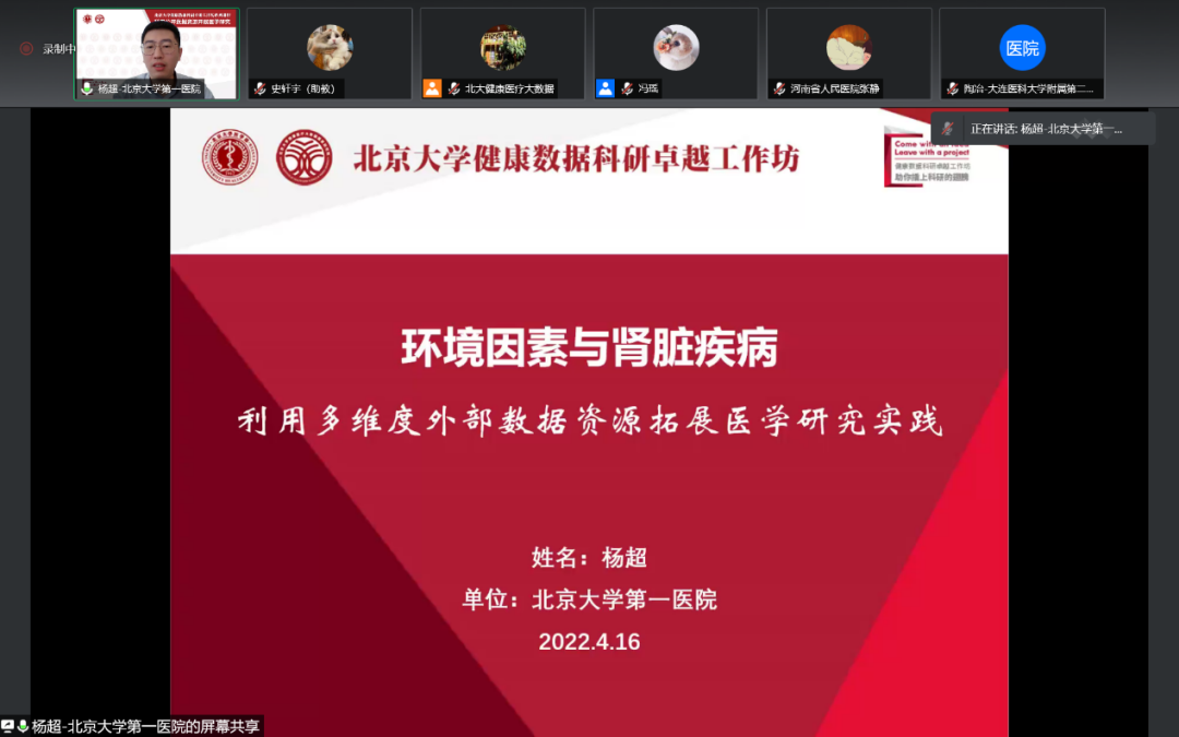 北京大学第一医院杨超助理研究员讲授《环境因素与肾脏疾病——利用多维度外部数据资源拓展医学研究实践》