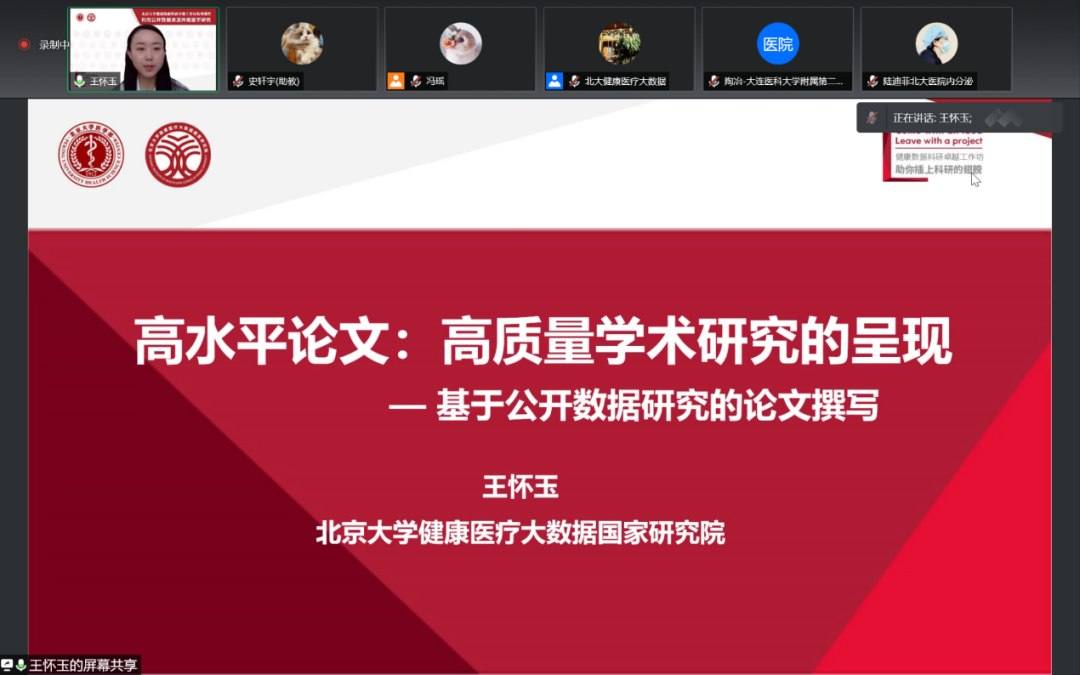 北京大学健康医疗大数据国家研究院王怀玉助理研究员讲授《利用公开数据资源发表高水平科研论文》