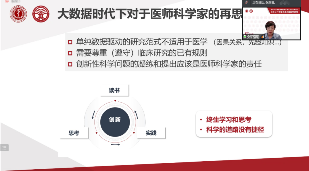 北京大学健康医疗大数据国家研究院副院长张路霞教授讲授《从临床医师到医师科学家——大数据时代的新契机》