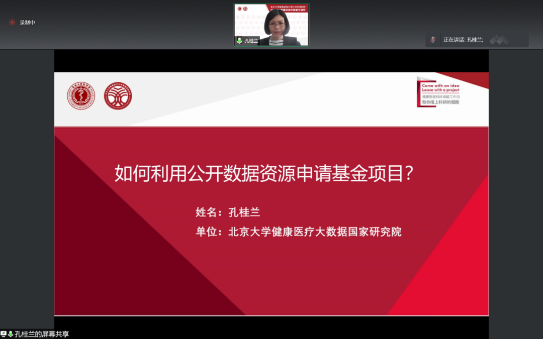 北京大学健康医疗大数据国家研究院孔桂兰副研究员讲授《利用公开数据资源申请基金的经验分享》