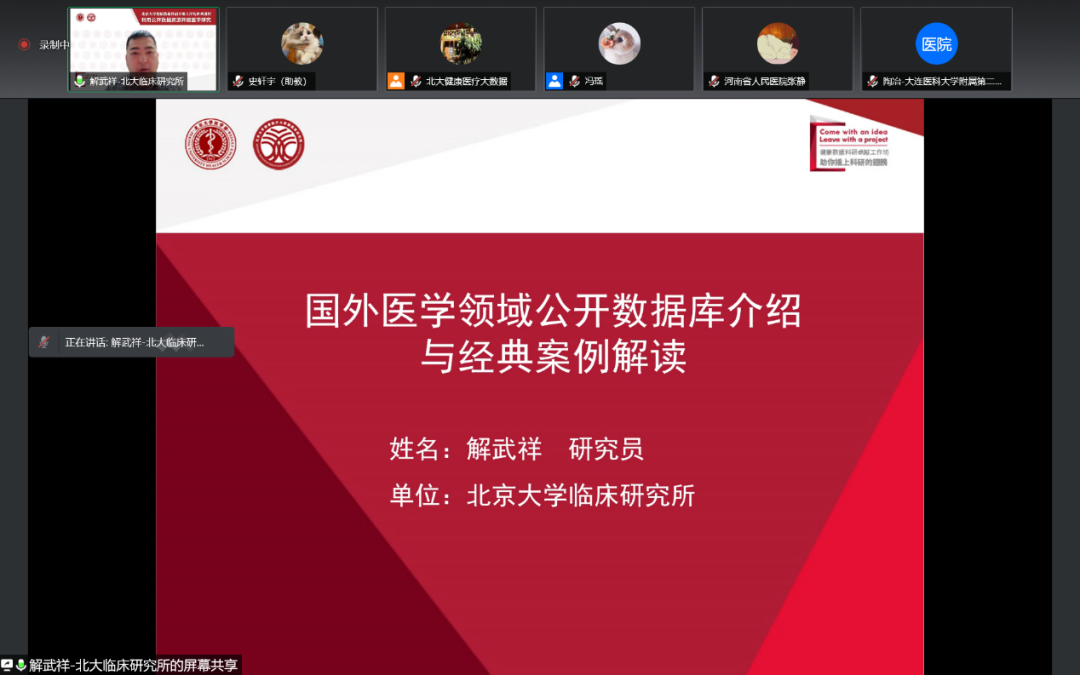 2022年4月23日,北京大学健康医疗大数据国家研究院精心打造的创新课程体系“北京大学健康数据科研卓越工作坊”2022年第1期培训“利用公开数据资源开展医学研究”圆满结束。