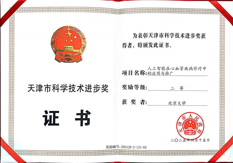 该项目得到了国家卫健委、天津市科委等课题的支持,共发表论文23篇,获国家授权专利3项、软件著作权5项,编著的《人工智能心电图》专著入选年度医学学科类“医界好书”榜。