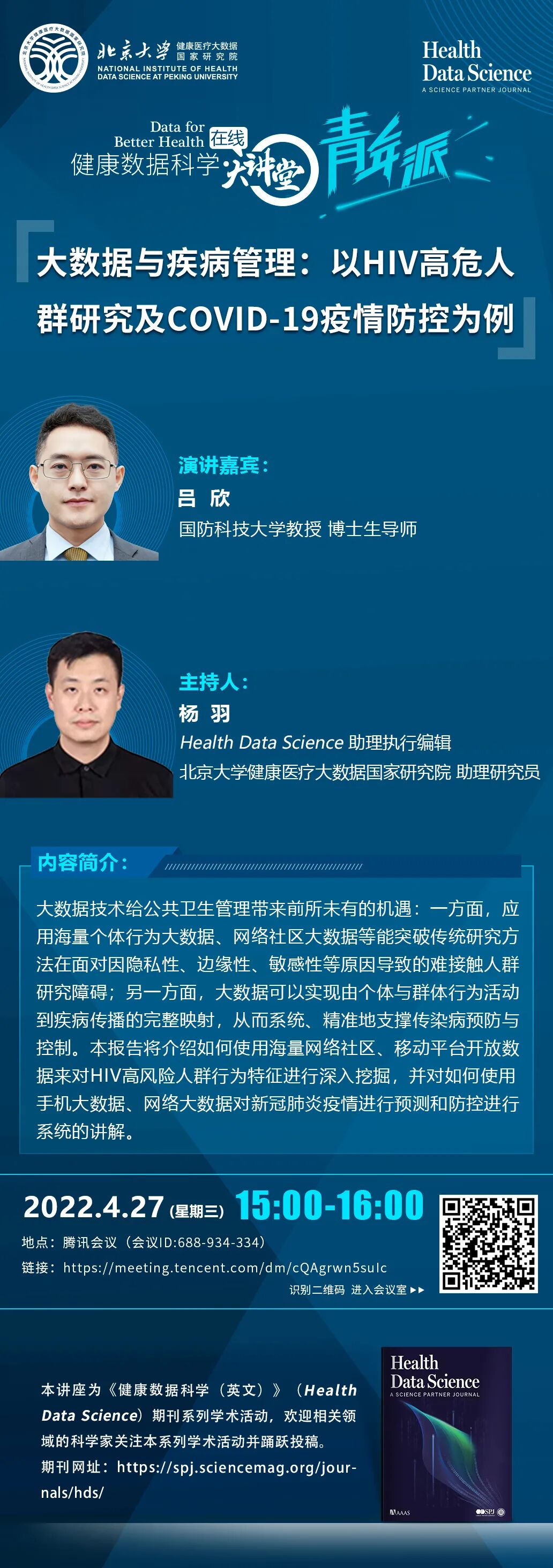直播预告∣健康数据科学·在线大讲堂第十三讲《大数据与疾病管理:以HIV高危人群研究及COVID-19疫情防控为例 》